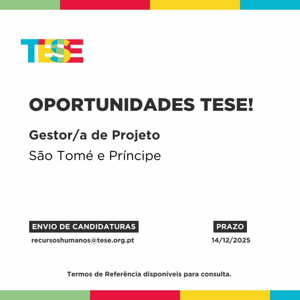 A TESE está a recrutar um/a Gestor/a de Projeto para a São Tomé e Príncipe. Para mais informações, consulte os Termos de Referência.